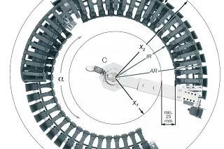 Select the next smaller X2 of the chain from the available installation space of the outer radius. Subtract 80 mm from dimension X2 to obtain the required outer radius AR. For selection of chain outer radii, see table dimension X2 of the corresponding series.