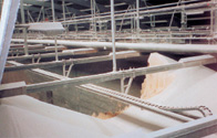 Operation in severe dust. The energy chains are employed in trolley and crane, the crane drive arranged in the opposite direction.