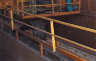 The wagon makes a 180° turn and empties into the coal bunker. The energy chain secures the energy supply of the rotating device.