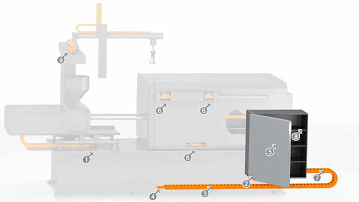 We not only provide you with cost-effective cables for motion-control (and fixed installation) applications, but also with the matching energy chains to connect the control cabinet to the machine. Including many novelties, such as the plug-in energy chain, to directly plug the energy supply system into the control cabinet within seconds.