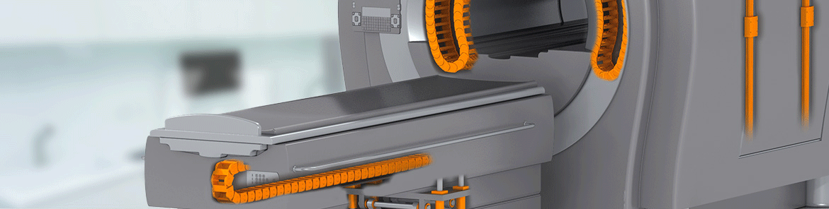 Lubrication-free, cleanroom-compatible, media-resistant, corrosion-free, low noise – These are crucial criteria for medical equipment components. igus® supplies plastic bearings and energy chains that possess exactly these properties. Lubrication-free bearings are used in X-ray robots, laboratory devices, patients' chairs, hospital beds and prostheses, among other things. Maintenance-free energy chains are used for the protection and guidance of cables in e.g. operating theatre devices, rehabilitation systems and imaging diagnostic equipment.