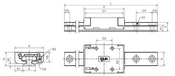 Rozměry stejné jako u nízkoprofilových vodicích systémů recirkulujících ložisek