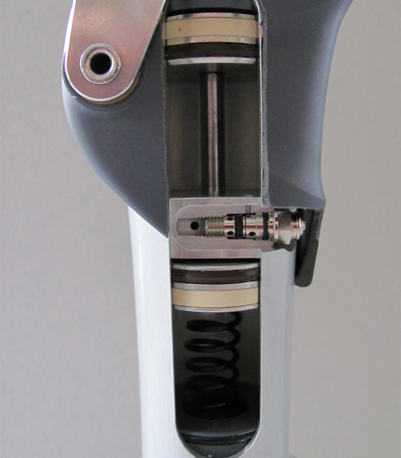 In this prosthesis for pneumatic knee joints, Otto Bock SE & Co. KGaA, the world market leader in technical orthopaedics, uses guide rings made of iglidur J to replace the PTFE guide bands used previously. The rings absorb radial forces and guide the pistons easily and with little friction, influencing the joint's swing phase. The knee joint's functionality, quality, and service life were increased. The important sliding properties are also greatly improved.