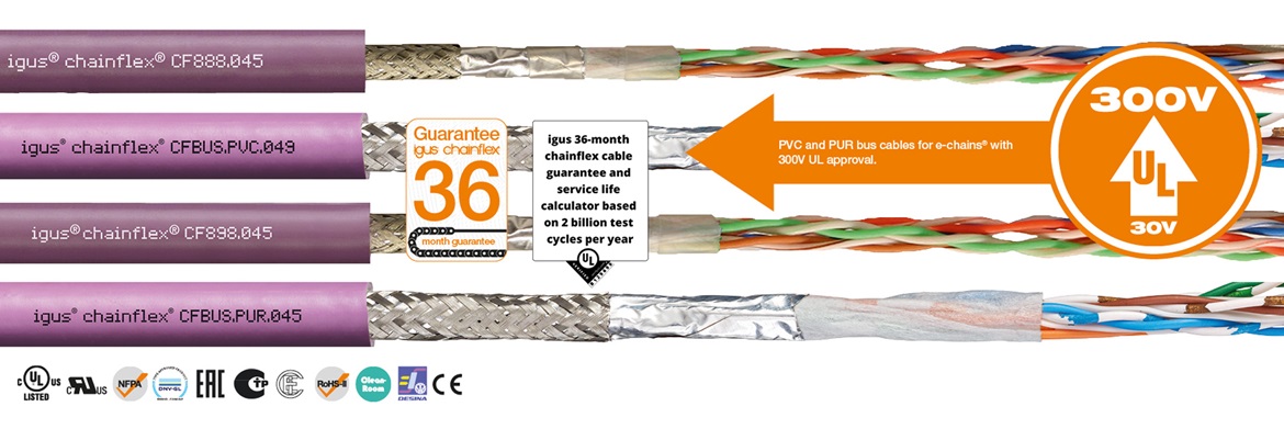 chainflex® bus cables available immediately in all qualities with 300V UL certification