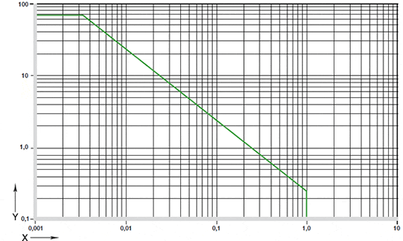 Obr. 01: Přípustné hodnoty pv pro kluzná ložiska iglidur® A290 s tloušťkou stěny 1 mm v suchém provozu proti ocelové hřídeli při +20 °C instalované v ocelovém pouzdru.