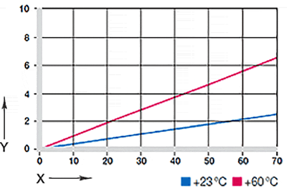 S rostoucí teplotou se pevnost v tlaku kluzných ložisek iglidur® A290 snižuje. Obr. 02 tento vztah objasňuje. Teplota v celém ložiskovém systému má rovněž vliv na opotřebení ložiska. Opotřebení se zvyšuje se zvyšujícími se teplotami a tento vliv je obzvláště výrazný od teploty 120 °C výše. Při teplotách vyšších než +110 °C se doporučuje přídavné zajištění.